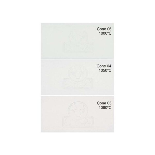 Coeficiente dilatación 1000ºC (25-500ºC): 60.2×10^-7ºC^-1(*) Rango de cocción recomendado para que la pasta desarrolle sus mejores prestaciones, tanto a nivel de características técnicas como de seguridad, en condiciones de cocción convencionales. Las muestras de color pueden mostrar temperaturas fuera del rango recomendado para brindar una visión más amplia, pero se trata de piezas cocidas en condiciones controladas.