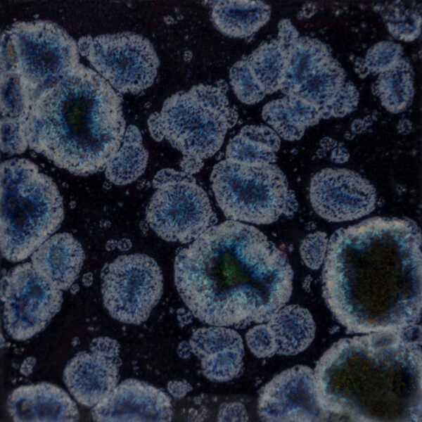 Para ver otra muestra a mayor temperatura: https://www.maycocolors.com/product/cg-795-yadro-print/Remover bien el esmalte antes de la aplicación, para que los cristales queden repartidos de forma homogénea. Estos, fundirán y generarán los efectos. Tras la cocción, pueden generar texturas, en función del grado de fundencia alcanzada. Es por ello que pueden crearse superficies difíciles de limpiar, por lo que se esta gama no está aconsejada para objetos culinarios y sí decorativos, si bien cuando los llevamos a alta temperatura (cambiará el tono) evitaremos esta circunstancia, pues el cristal ha quedado totalmente integrado en el esmalte.