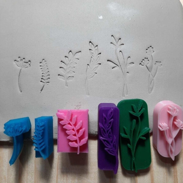 Cada sello esta formado por 5 mm de alto con la forma de letra, para aplicar en la cerámica. A su vez tiene un agarre de 15 mm para que sea cómodo a la hora de usarlo.