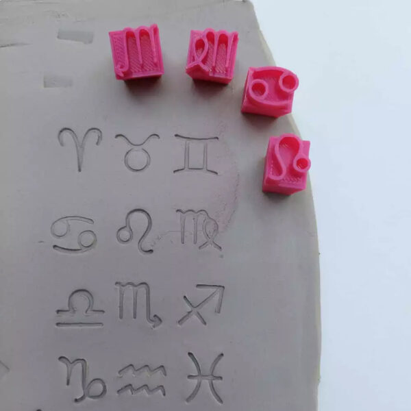 Cada sello esta formado por 5 mm de alto con la forma de letra, para aplicar en la cerámica. A su vez tiene un agarre de 15 mm para que sea cómodo a la hora de usarlo.