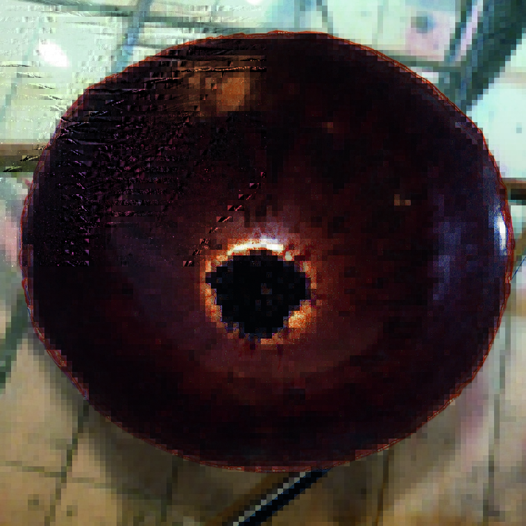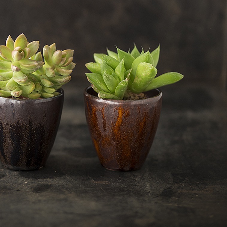 - Esmalte de color marrón rojizo con efectos de brillo.
