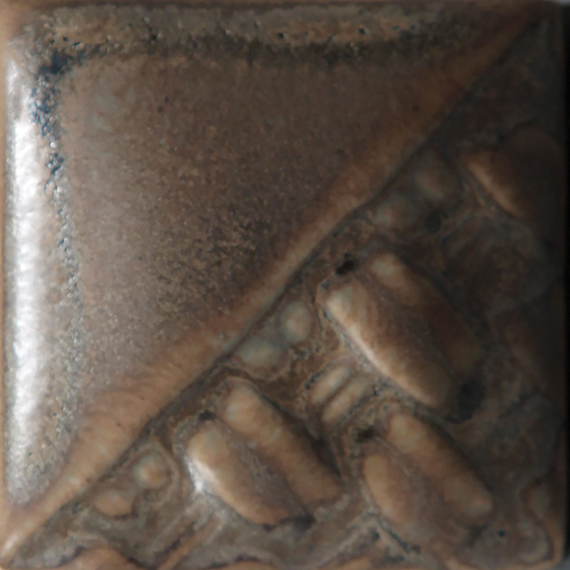 SW-174 LEATHER pertenece a la gama Stoneware de Mayco para alta temperatura. Es un esmalte marrón mate que muestra tonos de azul y verde. La variación del esmalte depende de la aplicación. Cuanto más espesa sea la aplicación, más homogéneo será el color. El esmalte se volverá translúcido donde sea más delgado y se acumulará más oscuro alrededor de las texturas de la superficie.