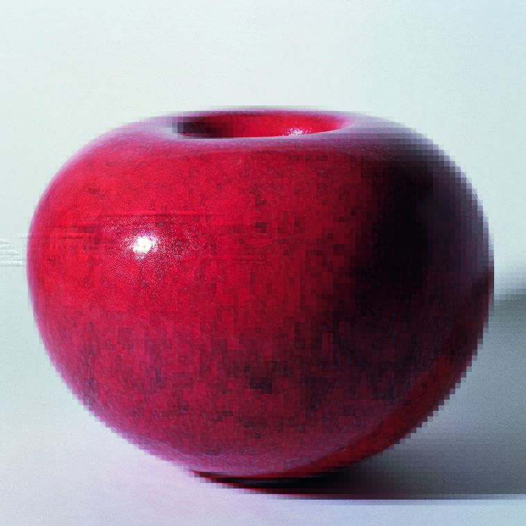 Rojo rosado con motas negras que fluyen sobre la superficie de las piezas