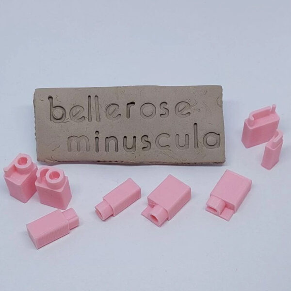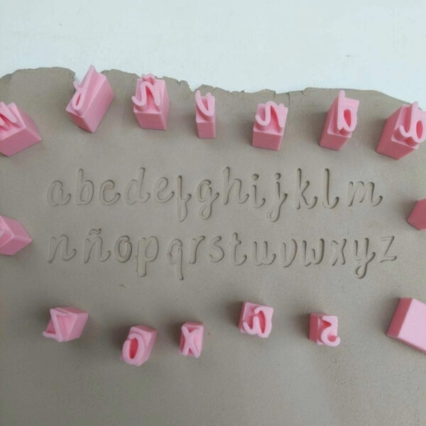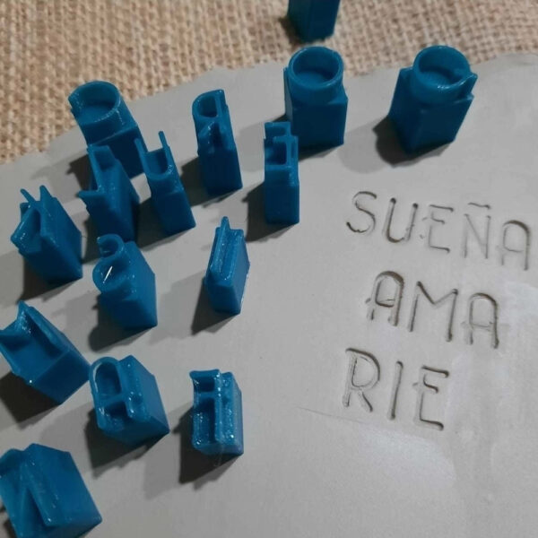 Cada sello esta formado por 5 mm de alto con la forma de letra, para aplicar en la cerámica. A su vez tiene un agarre de 15 mm para que sea cómodo a la hora de usarlo.
