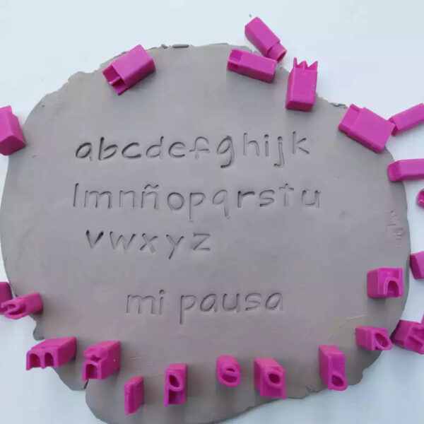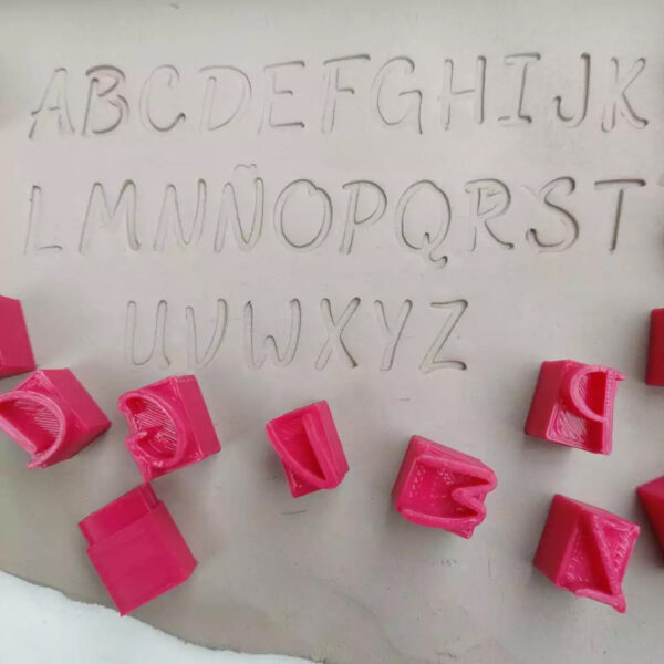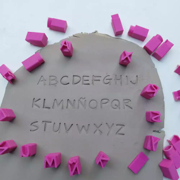 Cada sello esta formado por 5 mm de alto con la forma de letra, para aplicar en la cerámica. A su vez tiene un agarre de 15 mm para que sea cómodo a la hora de usarlo.